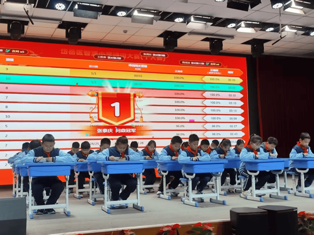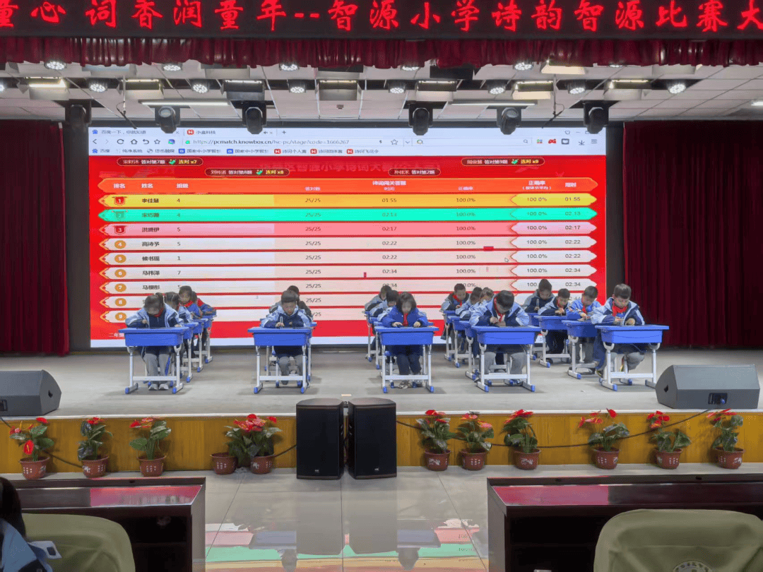 团体赛则高潮迭起,竞争激烈。“必答题”夯实了各队的基础知识;“抢答题”不仅比拼知识储备,更考验反应速度,现场气氛紧张刺激;“风险题”环节策略与勇气并存,各队审时度势,勇于挑战,将比赛推向高潮;最后的“飞花令”对决,选手们才思泉涌,佳句频出,充分展现了诗词的无穷魅力与智源学子的风采。