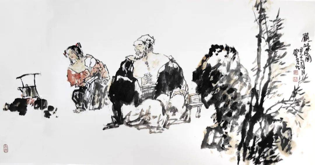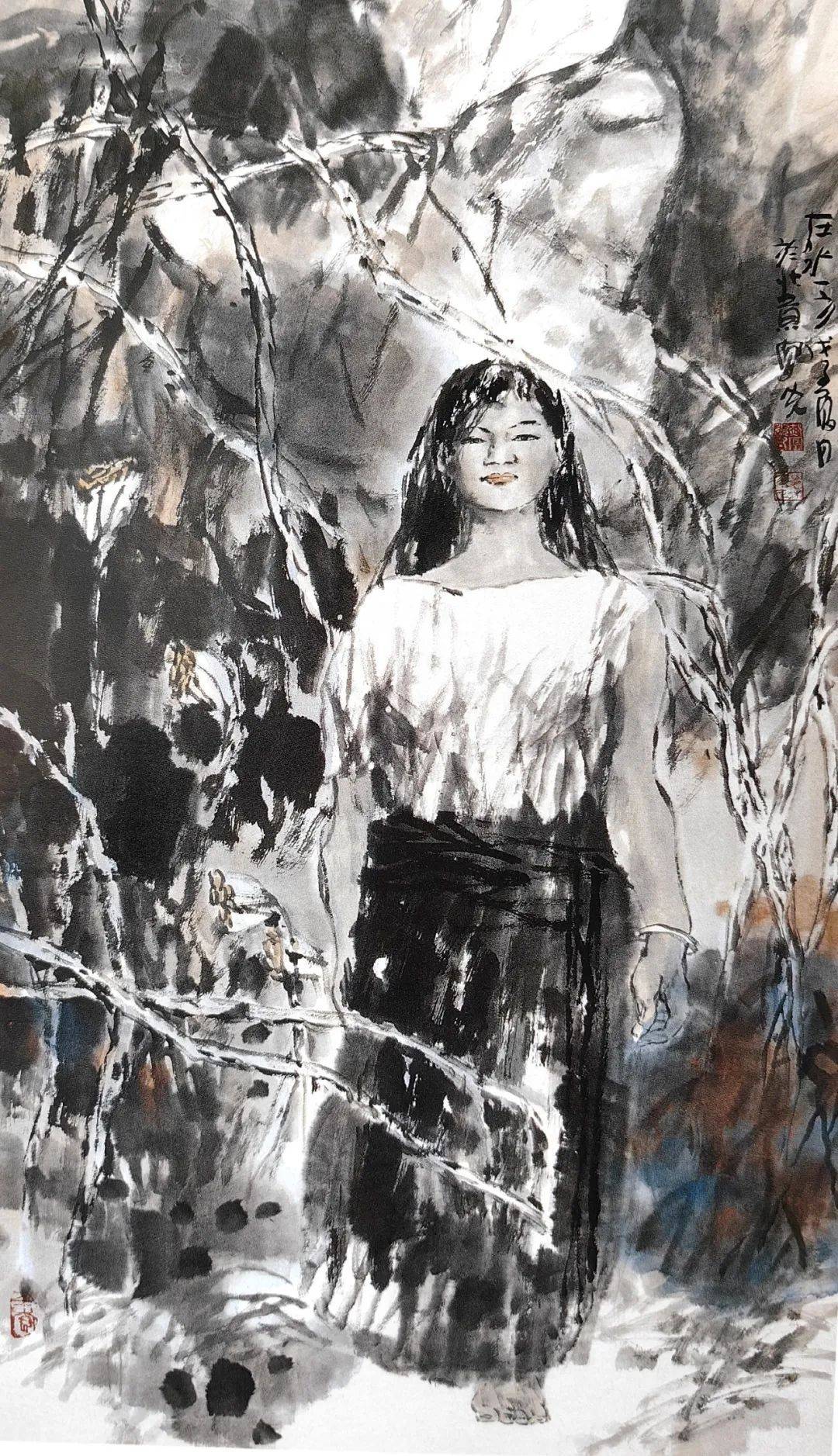 郝凤先笔下的水墨人物,深刻镌刻着浓郁的人文情感,每一笔、每一墨,皆是对时代人文精神的深情颂歌,自然流淌着不朽的光辉。其作品中,水墨人物的内蕴既持久鲜活,又展现出敦厚而淡远的审美境界,仿佛承载着“仁者爱人”的古老血脉,以及温柔敦厚的心灵底蕴。观其作品,犹如春风拂面,清新脱俗,令人心旷神怡。